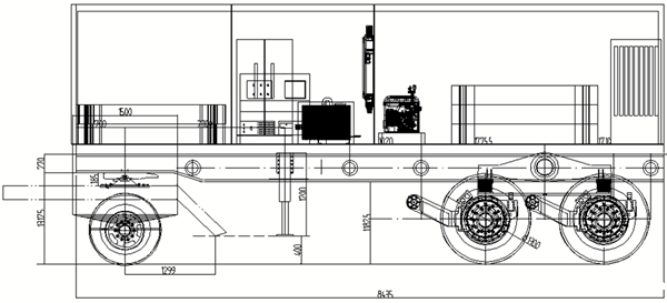 负荷拖车能够实现在全功率范围的加载动力输出。在进行试验时,负荷试验系统由负荷拖车与被试验车辆组成,由被试验车辆牵引前进,通过对被试验车辆实施精细调节且稳定的任意负荷,来测量车辆行驶过程中各种负荷的参数值,例如:车速、发动机转速、牵引力、滑转率、牵引功率、驱动轮转速、实际行驶距离、试验运行时间等。
